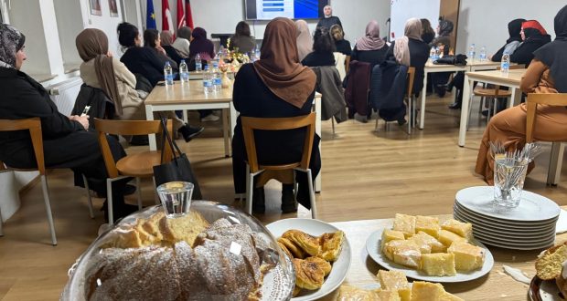 DİTİB TÜRK İSLAM CEMİYETİ DUİSBURG WANHEİMERORT AYSOFYA CAMİİ KADINLAR KOLU adına açıklama yapan Saniye YILDIRAN: ‘Kadınlarımızın farklı alanlarda sorularını ve sorunlarını ele almak ve bu konuda kadınlarımıza yardımcı olmak için yoğun bir eğitim programı hazırladık. Programlarımıza yoğun bir katılım ve ilgi var. Bu bizi ziyadesiyle memnun ediyor. Bu programlarımızın devamı gelecek’ dedi.