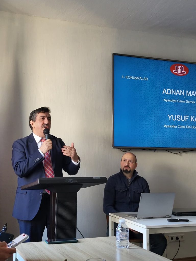 Ayasofya Camii din görevlisi Yusuf Karakoç yaptığı konuşmada velilere ve öğrencilere yönelik tarihten ve geleneğimizden örnekler vererek öğütlerde bulundu. Yusuf Karakoç ‘Günümüzde öğrencilerimizin bu cemiyetlerde yetişmesi, temel terbiyelerini burada almaları, bu kültürel iklimde yoğrulmaları geleceklerinin de emin olmasını sağlıyor. Dünyamızda, çevremizde ve sanal dünyada olumsuz örneklerin çok olduğu bir ortamda öğrencilerimizin böyle bir olanağa sahip olmasına ne kadar şükür etsek azdır’ dedi.