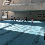 Minik Suffa öğrenci gurubu cami tarihi, mimari yapısı ve cami içindeki sanatsal yapılarla ilgili bilgi aldıktan sonra, eğitmenleriyle cami içinde oyunlar oynadılar.