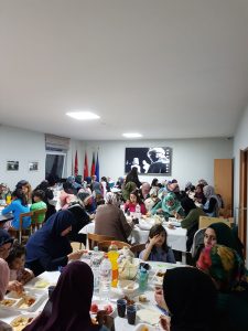 DİTİB Duisburg Wanheimerort derneğinin her yıl düzenlemiş olduğu geleneksel iftar programına kadınların yoğun katılımı dikkat çekti. Ayasofya Camii adına konuşan yönetim kurulu başkanı Adnan Mavi üyelere katılımdan dolayı teşekkür ederek, DİTİB Duisburg Wanheimerort’un çalışmaları ve felsefesini anlattı. İftar programı din görevlisi Burhan Karakulunç’un yaptığı dualarla sona erdi.